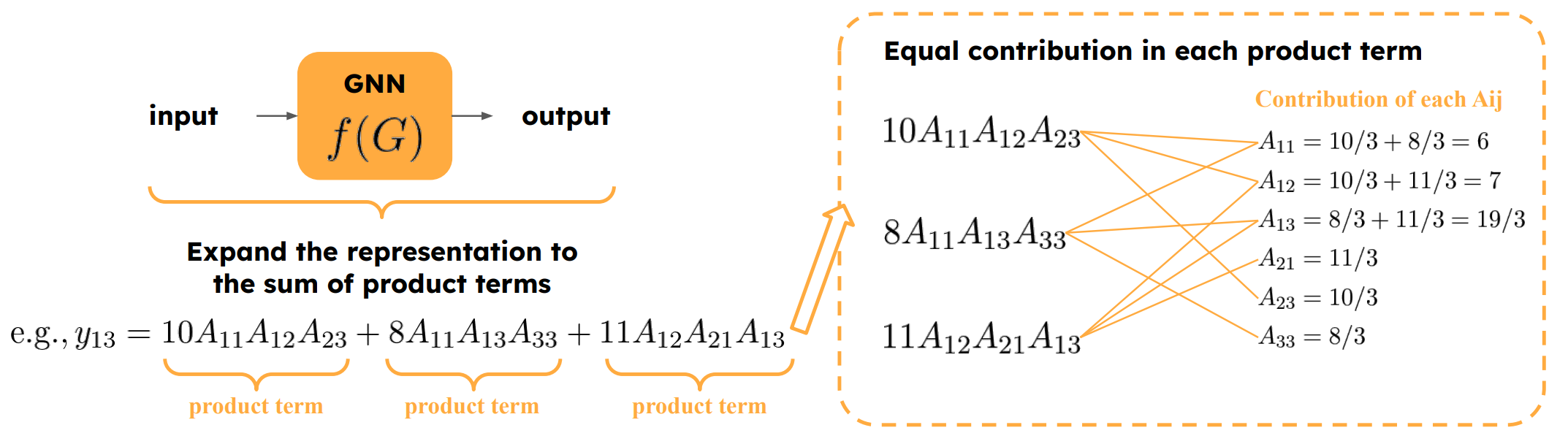 We introduce Graph Output Attribution (GOAt), a novel method to attribute graph outputs to input graph features, creating GNN explanations that are faithful, discriminative, as well as stable across similar samples. By expanding the GNN as a sum of scalar products involving node features, edge features and activation patterns, we propose an efficient analytical method to compute contribution of each node or edge feature to each scalar product and aggregate the contributions from all scalar products in the expansion form to derive the importance of each node and edge.
